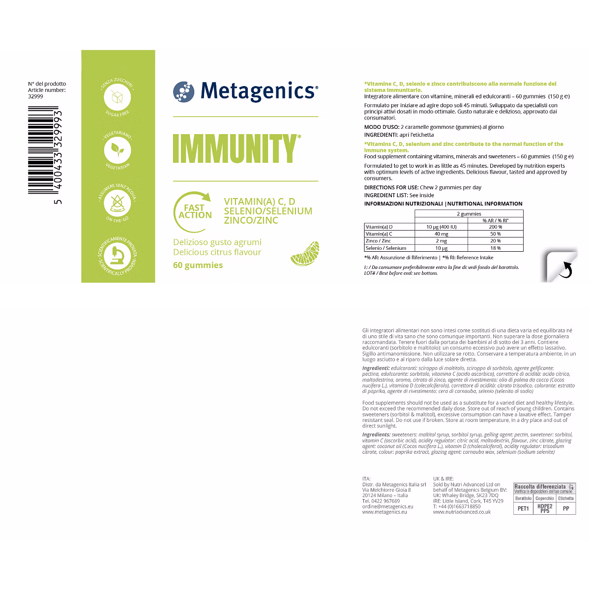 Our Immunity Gummies help bridge nutrient gaps by offering a fast-acting, scientifically-backed blend of essential immune-supporting nutrients, including vitamin D, vitamin C, zinc and selenium, working within 20 minutes. Our next-generation, tangerine-flavoured gummies are sugar-free, naturally delicious and vegetarian.